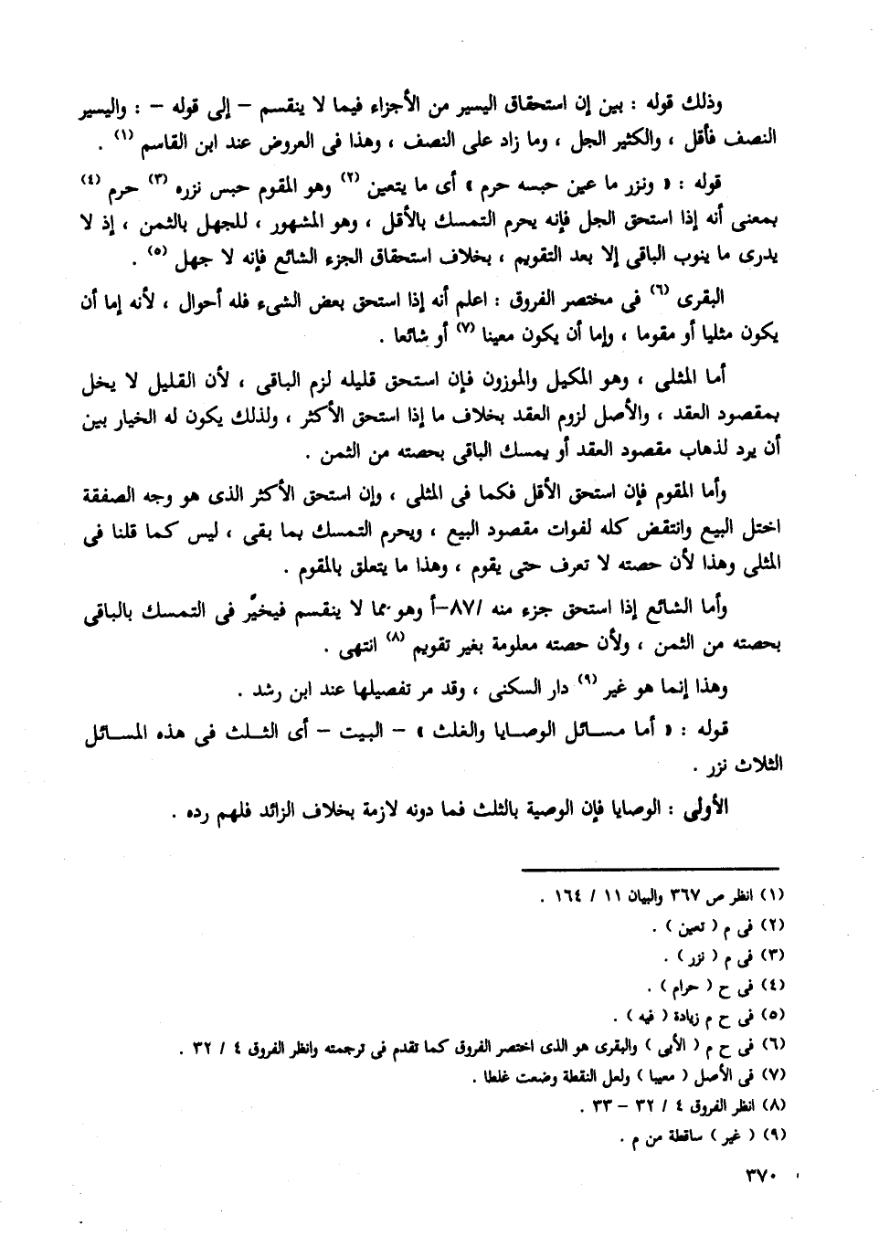 البقرى فى مختصر الفروق: اعلم أنه إذا استحق بعض الشئ فله أحوال، لأنه إما أن يكون مثليا أو مقوما، وإما أن يكون معينا أو شائعا.