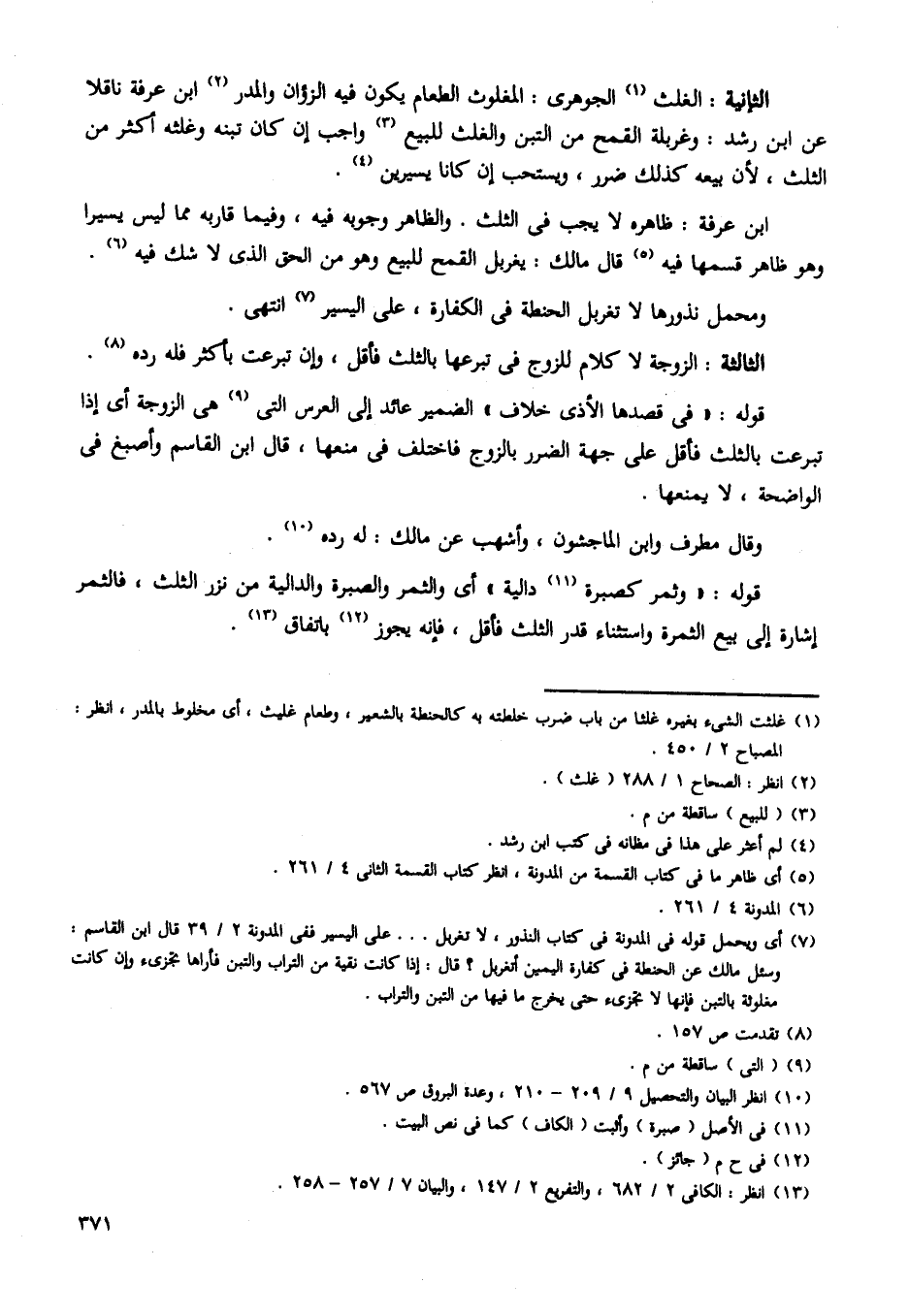 ابن عرفة: ظاهره لا يجب فى الثلث. والظاهر وجوبه فيه، وفيما قاربه مما ليس يسيرا وهو ظاهر قسمها فيه قال مالك: يغربل القمح للبيع وهو من الحق الذى لا شك فيه.