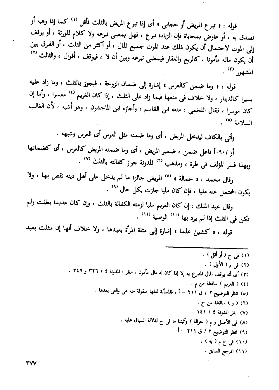 أو /90 - أفاعل ضمن، ضمير المريض، أى وما ضمنه المريض كالعرس، أى كضمانها وبهذا فسر المؤلف فى طرة، ومذهب المدونة جواز كفالته بالثلث.
