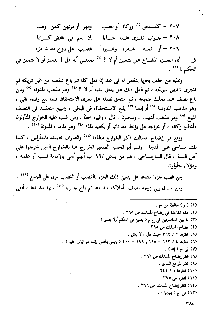 ووقع فى إيضاح المسالك ذكر الخوارج مطلقا والصواب تقييده بالمتأولين، كما للشارمساحى على المدونة. وفسر أبو الحسن الصغير الخوارج هنا بالخوارج الذين خرجوا على أهل السنة، قال الشارمساحى: هم من يدعى /92 - ب أنهم أولى بالإمامة لنسبه أو علمه، وهؤلاء متأولون.