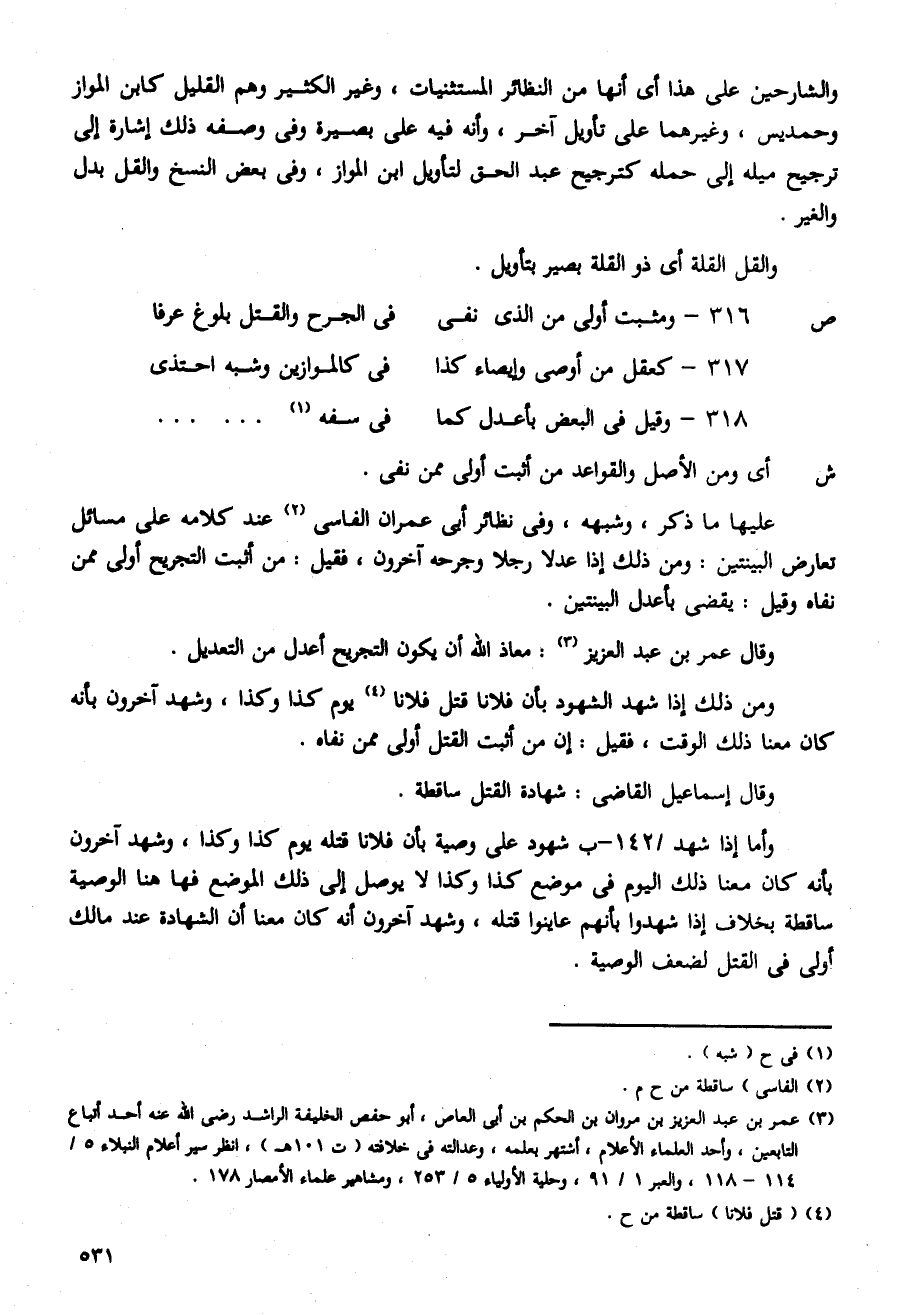 316 - ومثبت أولى من الذي نفى ... في الجرح والقتل بلوغ عرفا