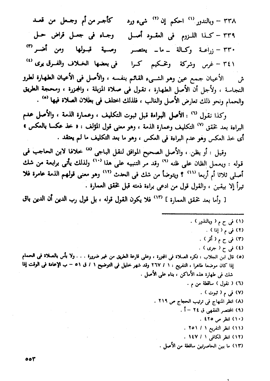 وكذا نقول: الأصل البراءة قبل ثبوت التكليف، وعمارة الذمة، والأصل عدم البراءة بعد تحقق التكليف وعمارة الذمة، وهو معنى قول المؤلف: "خذ عكسا بالعكس" أى خذ العكس وهو عدم البراءة فى العكس، وهو ما بعد التكليف ما لم يعتقد.