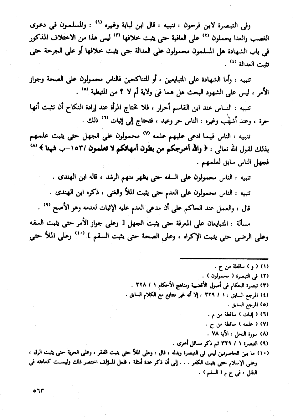 تنبيه: الناس فيما ادعى عليهم علمه محمولون على الجهل حتى يثبت علمهم بذلك لقول الله تعالى: {والله أخرجكم من بطون أمهاتكم لا تعلمون/ 153 - ب شيئا} فجهل الناس سابق لعلمهم.