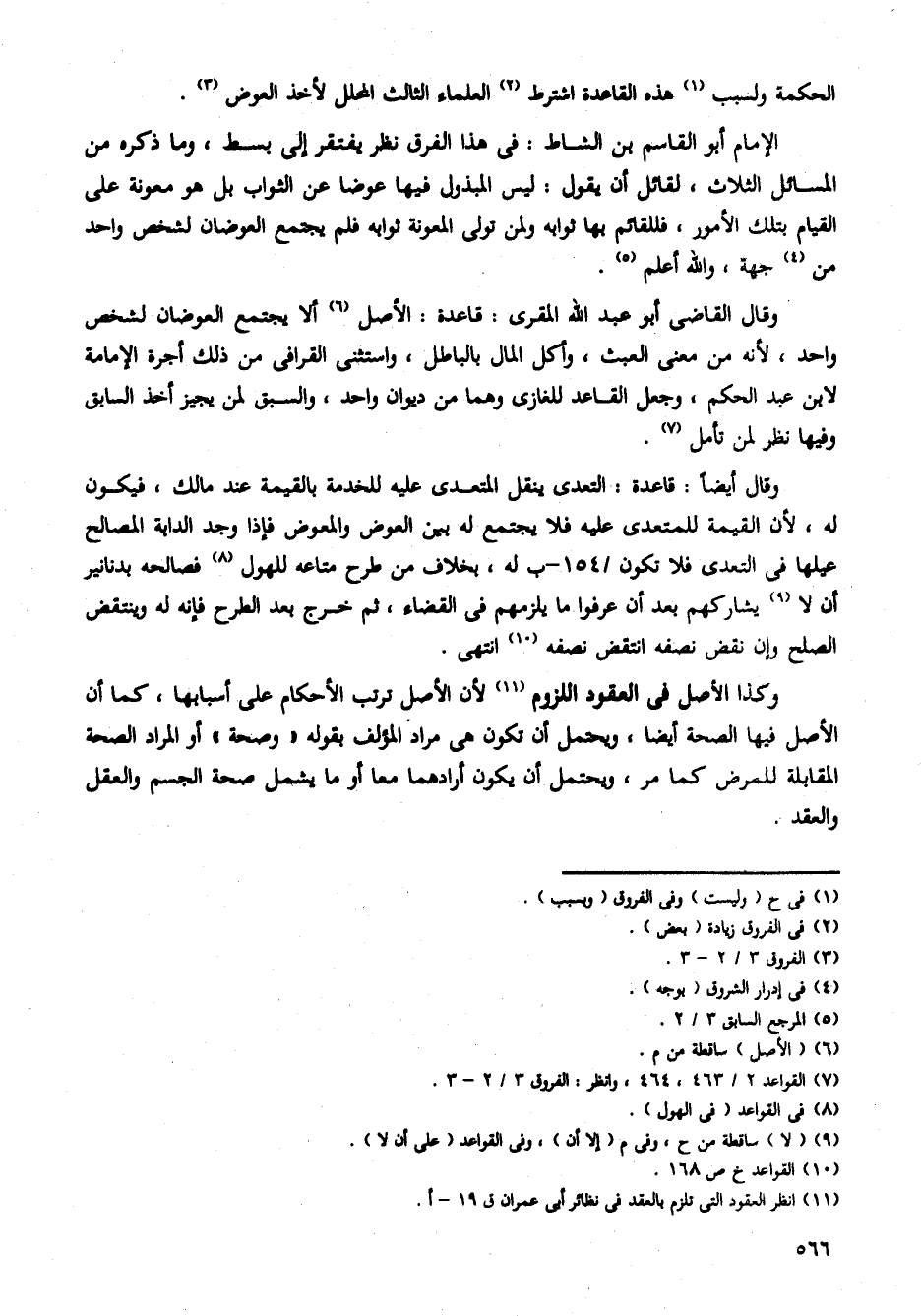 الإمام أبو القاسم بن الشاط: فى هذا الفرق نظر يفتقر إلى بسط، وما ذكره من المسائل الثلاث، لقائل أن يقول: ليس المبذول فيها عوضا عن الثواب بل هو معونة على القيام بتلك الأمور، فللقائم بها ثوابه ولمن تولى المعونة ثوابه فلم يجتمع العوضان لشخص واحد من جهة، والله أعلم.