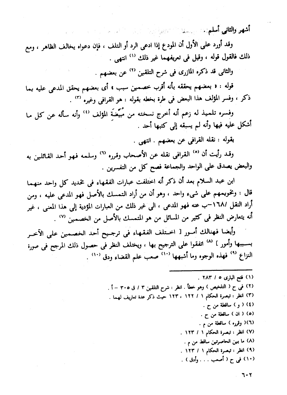 وأيضا فهنالك أمور [اختلف الفقهاء فى ترجيح أحد الخصمين على الآخر بسببها وأمور] اتفقوا على الترجيح بها، ويختلف النظر فى حصول ذلك المرجح فى صورة النزاع فهذه الوجوه وما أشبهها صعب علم القضاء ودق.