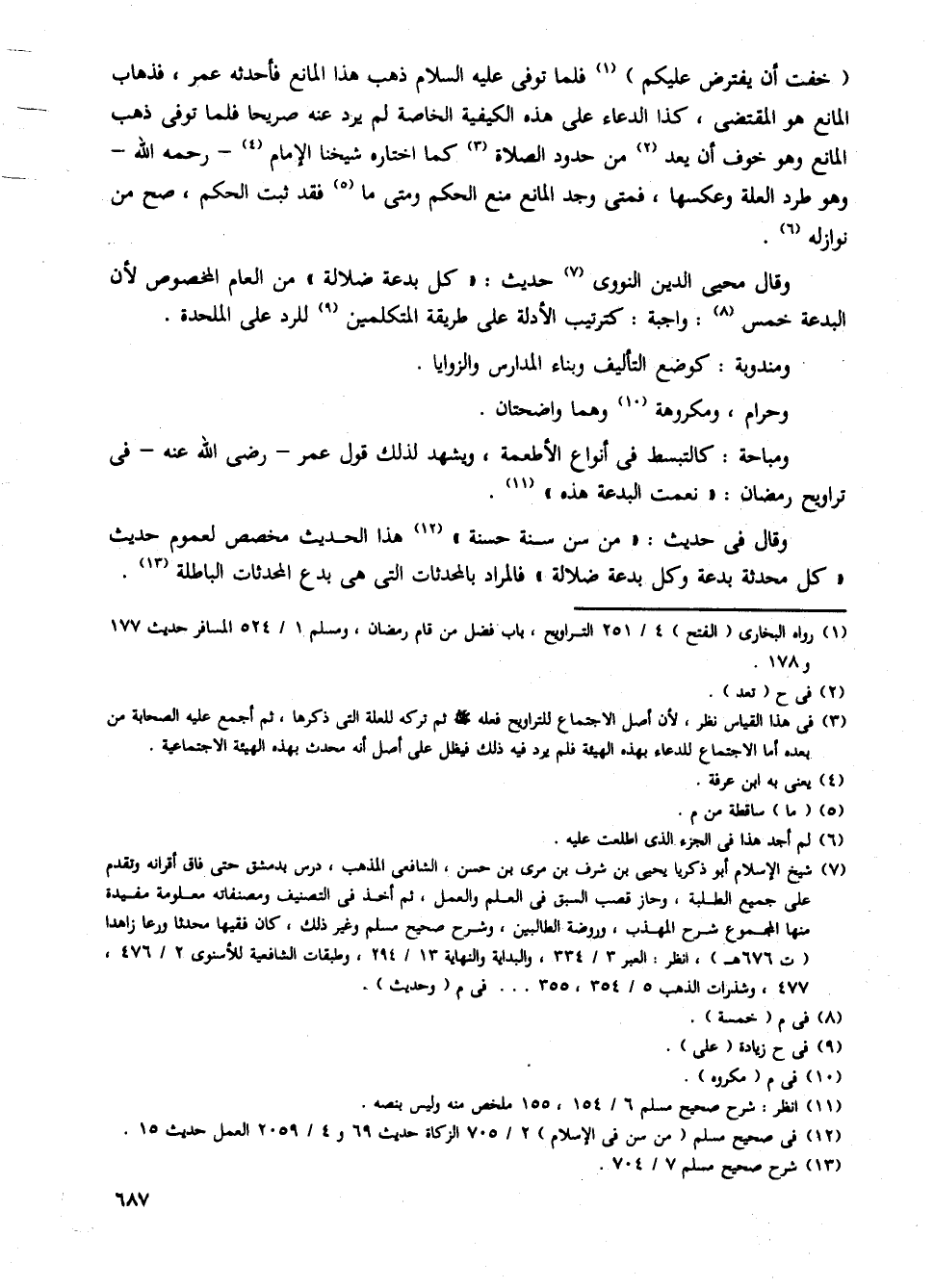 وقال محيي الدين النووي حديث: "كل بدعة ضلالة" من العام الخصوص لأن البدعة خمس: واجبة: كترتيب الأدلة على طريقة المتكلمين للرد على الملحدة.