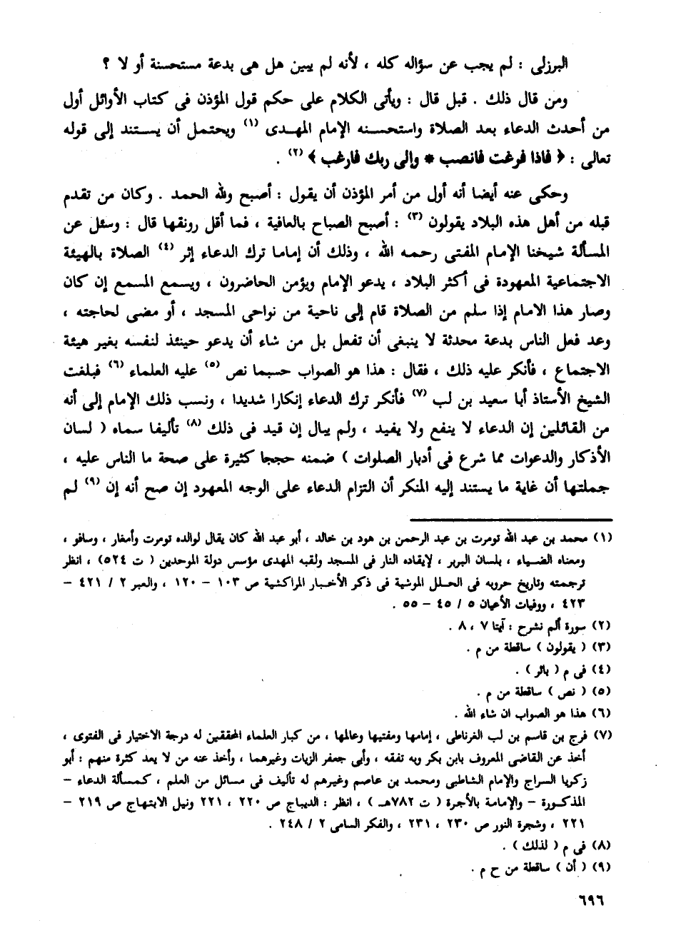 البرزلي: لم يجب عن سؤاله كله، لأنه لم يبين هل هي بدعة مستحسنة أو لا؟
