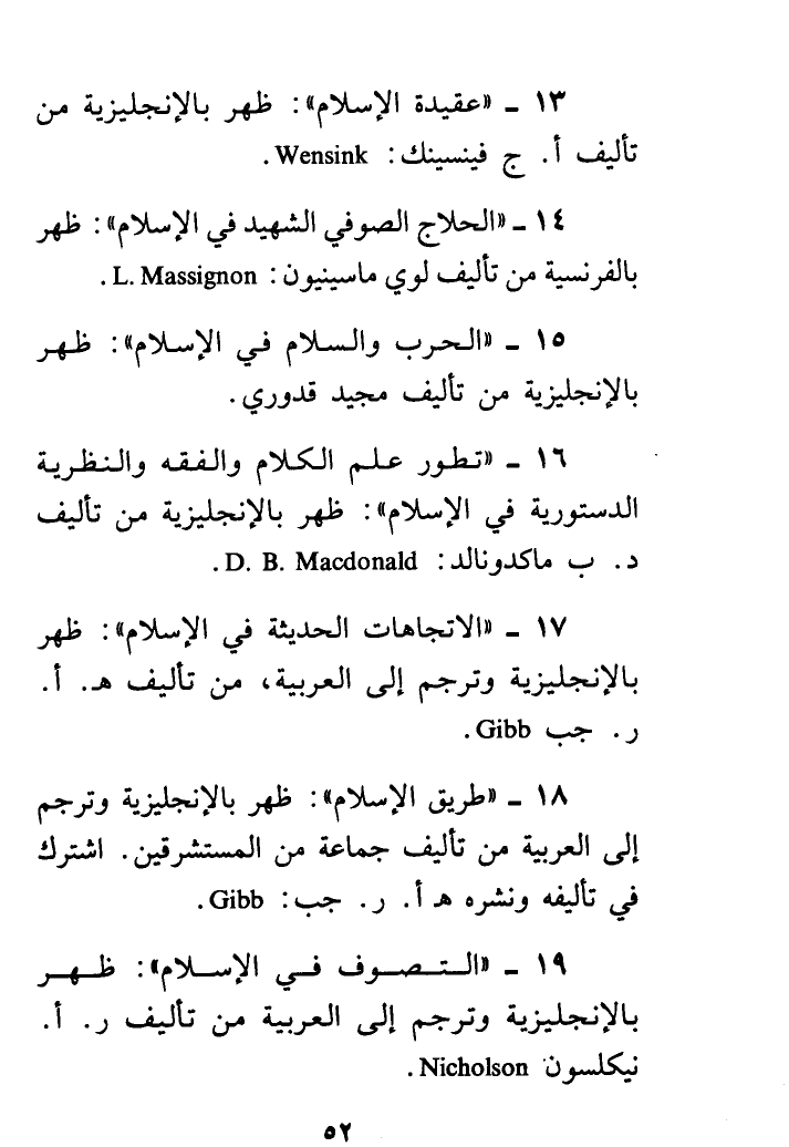 13 - " عقيدة الإسلام ": ظهر بالانجليزية من تأليف أ. ج. فينيسينك: Wensink .