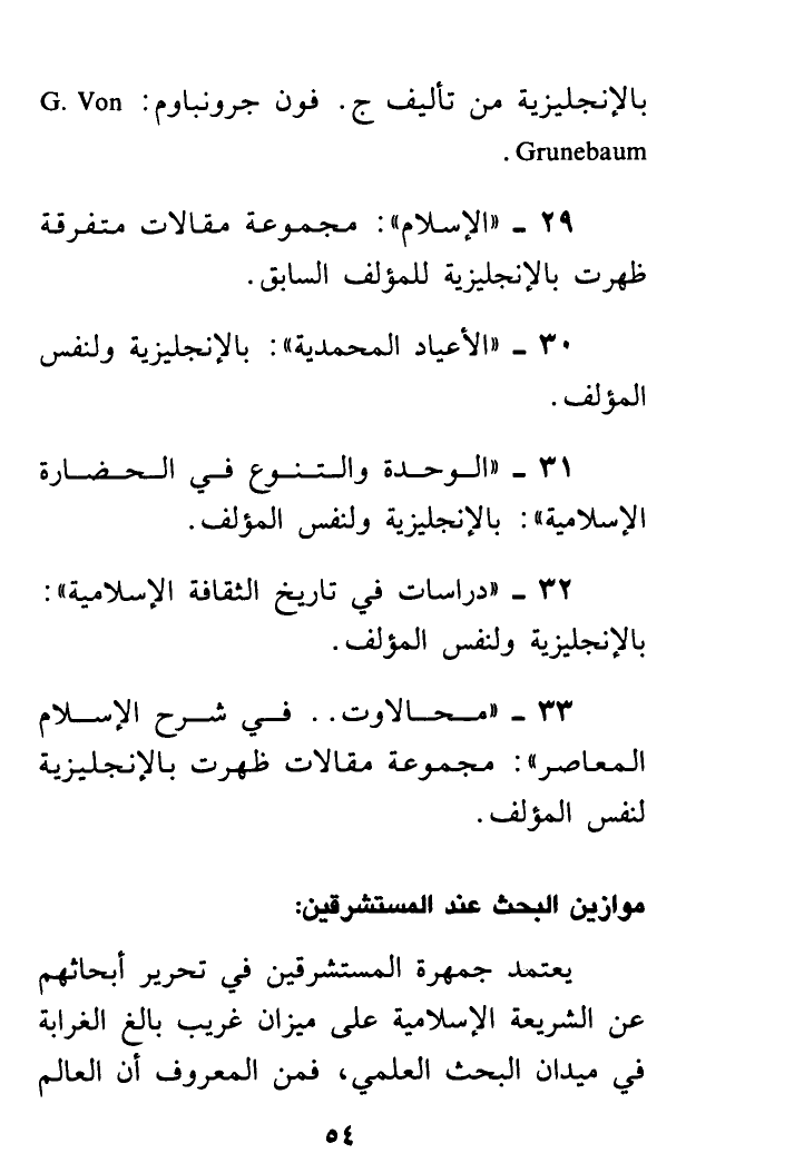 بالانجليزية من تأليف ج. فون جرونباوم: G. von Grunebaum .