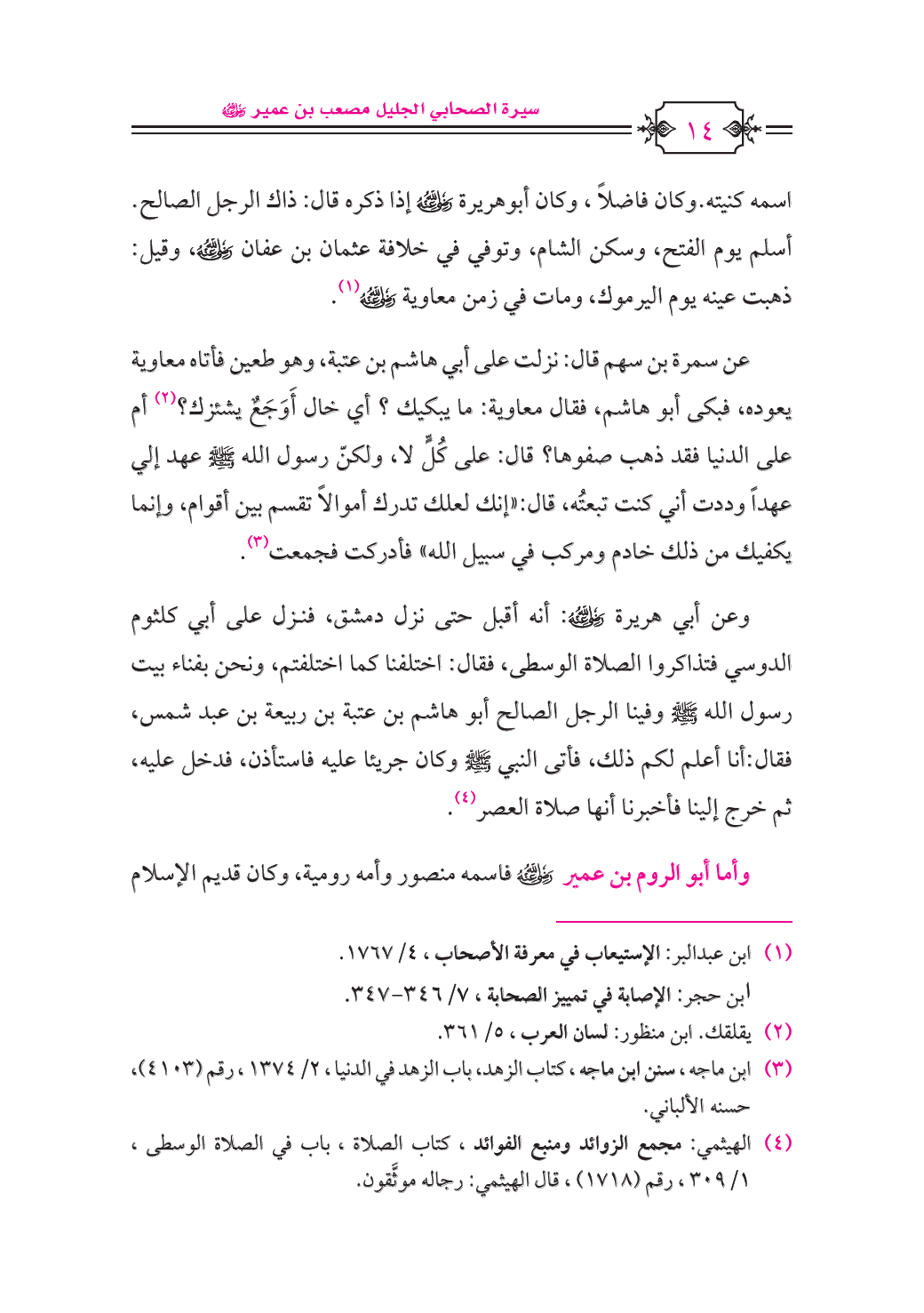 وأما أبو الروم بن عمير - رضي الله عنه - فاسمه منصور وأمه رومية , وكان قديم الإسلام