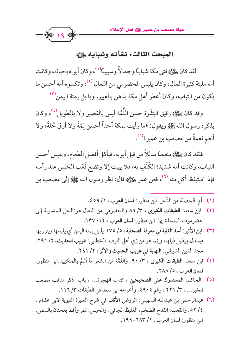(¬4) ابن سعد: الطبقات الكبرى , 3/ 90. واللِّمَّة من الشعر ما ألمَّ بالمنكبين. ابن منظور: لسان العرب , 5/ 288.