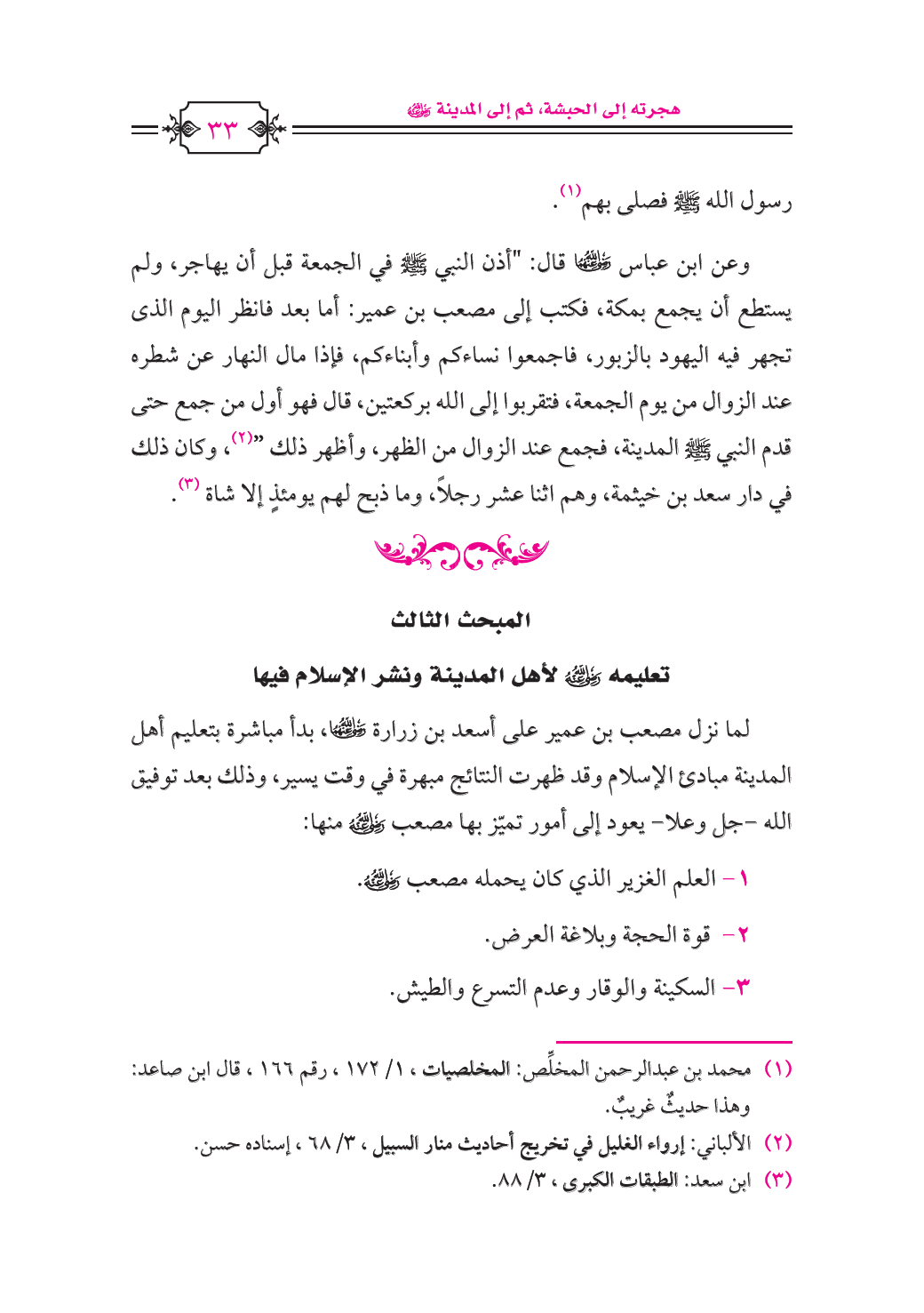 المبحث الثالث: تعليمه - رضي الله عنه - لأهل المدينة ونشر الإسلام فيها: