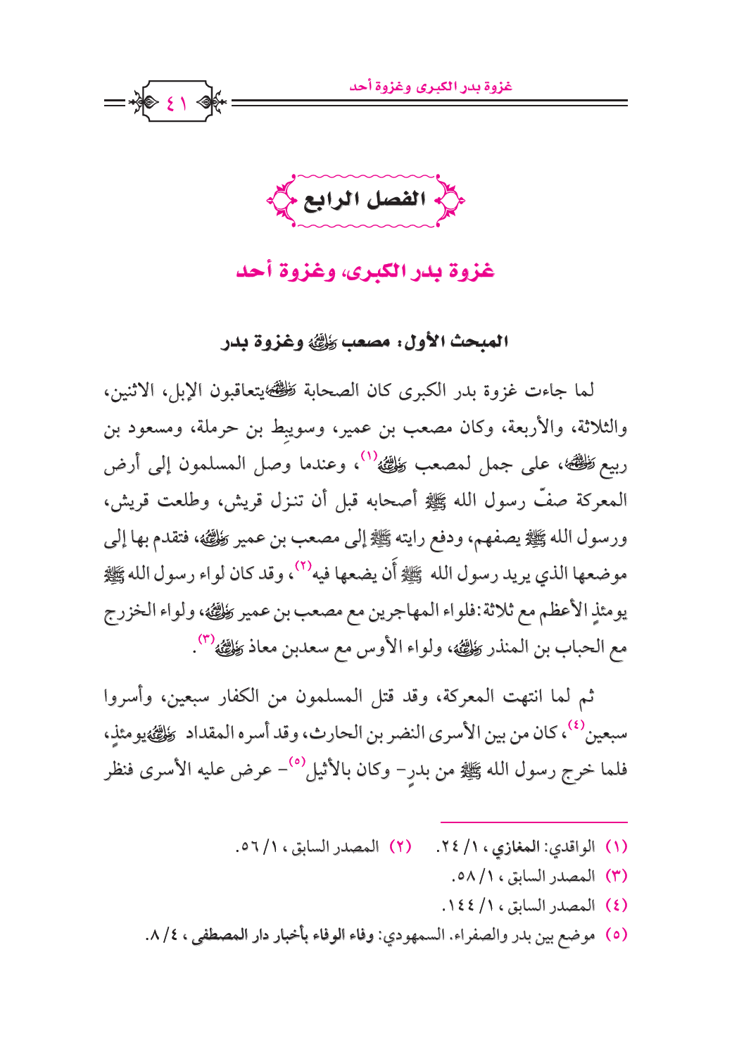 الفصل الرابع: غزوة بدر الكبرى , وغزوة أحد:
