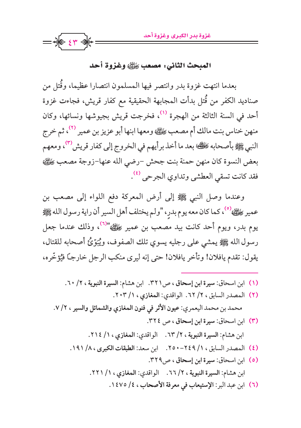 المبحث الثاني: مصعب - رضي الله عنه - وغزوة أحد: