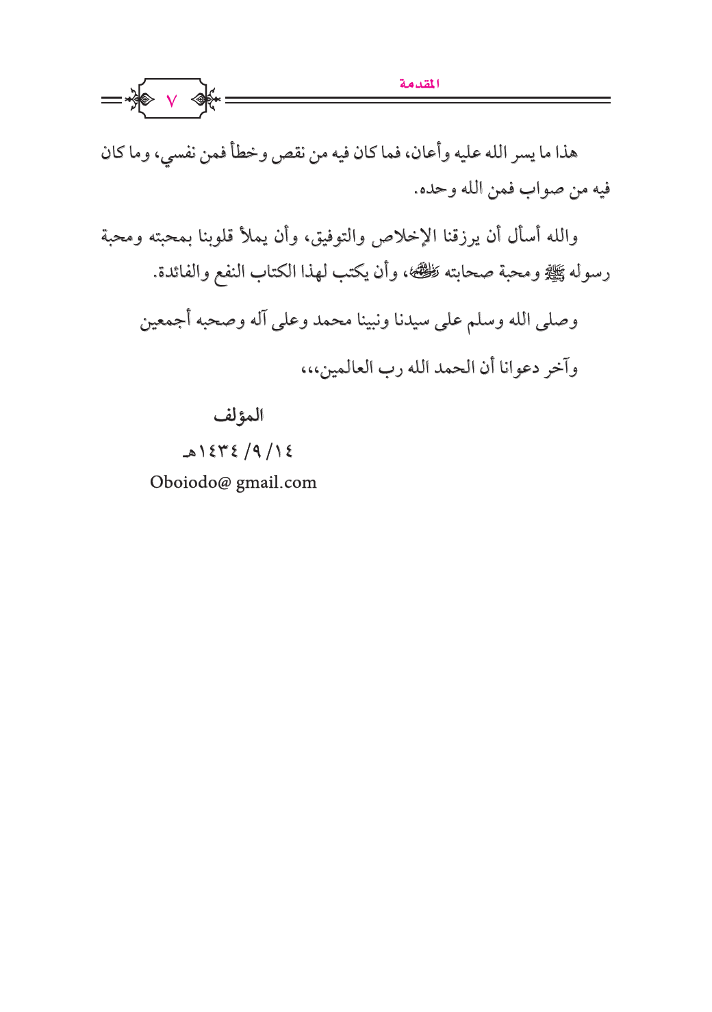 والله أسأل أن يرزقنا الإخلاص والتوفيق , وأن يملأ قلوبنا بمحبته - سبحانه وتعالى - ومحبة رسوله - صلى الله عليه وسلم - ومحبة صحابته - رضي الله عنهم - , وأن يكتب لهذا الكتاب النفع والفائدة.