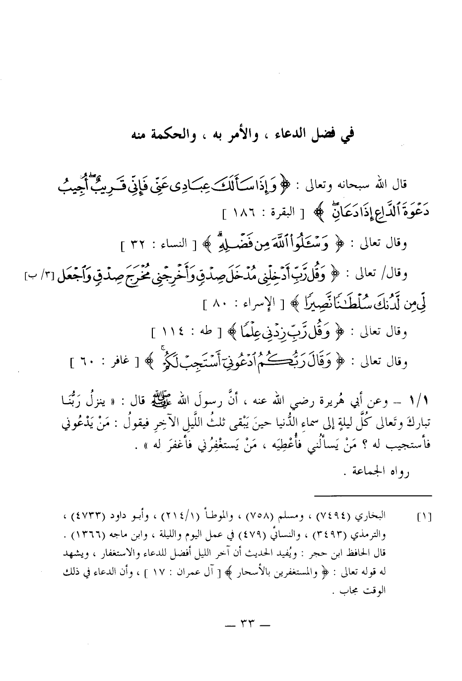 فِي فضل الدُّعَاء وَالْأَمر بِهِ وَالْحكمَة مِنْهُ