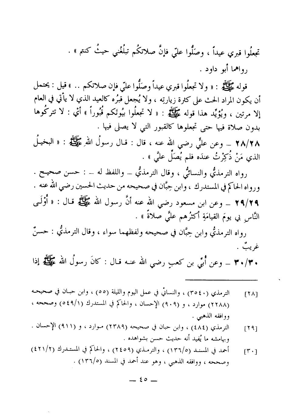 29 - وَعَن ابْن مَسْعُود رَضِي الله عَنهُ أَن رَسُول الله صلى الله عَلَيْهِ وَسلم قَالَ (أولى النَّاس بِي يَوْم الْقِيَامَة أَكْثَرهم عَليّ صَلَاة)