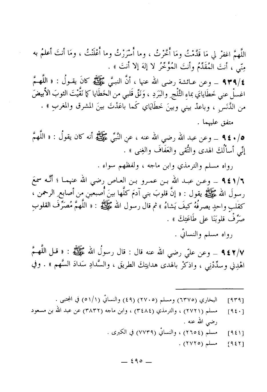 940 - وَعَن عبد الله رَضِي الله عَنهُ عَن النَّبِي صلى الله عَلَيْهِ وَسلم أَنه كَانَ يَقُول (اللَّهُمَّ إِنِّي أَسأَلك الْهدى والتقى والعفاف والغنى)