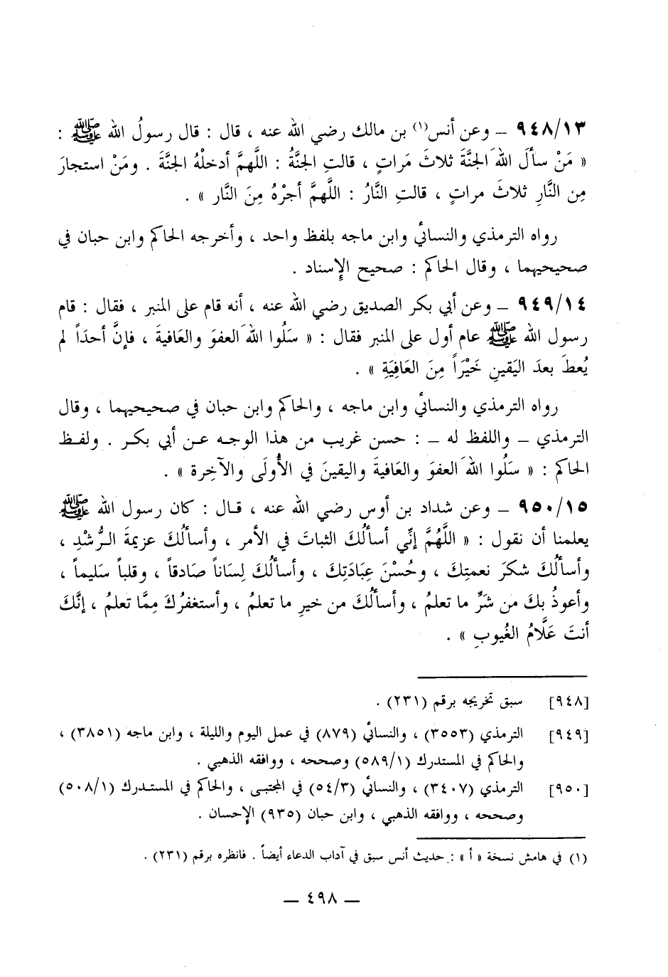 950 - وَعَن شَدَّاد بن أَوْس رَضِي الله عَنهُ قَالَ كَانَ رَسُول الله صلى الله عَلَيْهِ وَسلم يعلمنَا أَن نقُول (اللَّهُمَّ إِنِّي أَسأَلك الثَّبَات فِي الْأَمر وَأَسْأَلك عَزِيمَة الرشد وَأَسْأَلك شكر نِعْمَتك وَحسن عبادتك وَأَسْأَلك لِسَانا صَادِقا وَقَلْبًا سليما وَأَعُوذ بك من شَرّ مَا تعلم وَأَسْأَلك من خير مَا تعلم وأستغفرك مِمَّا تعلم إِنَّك أَنْت علام الغيوب)