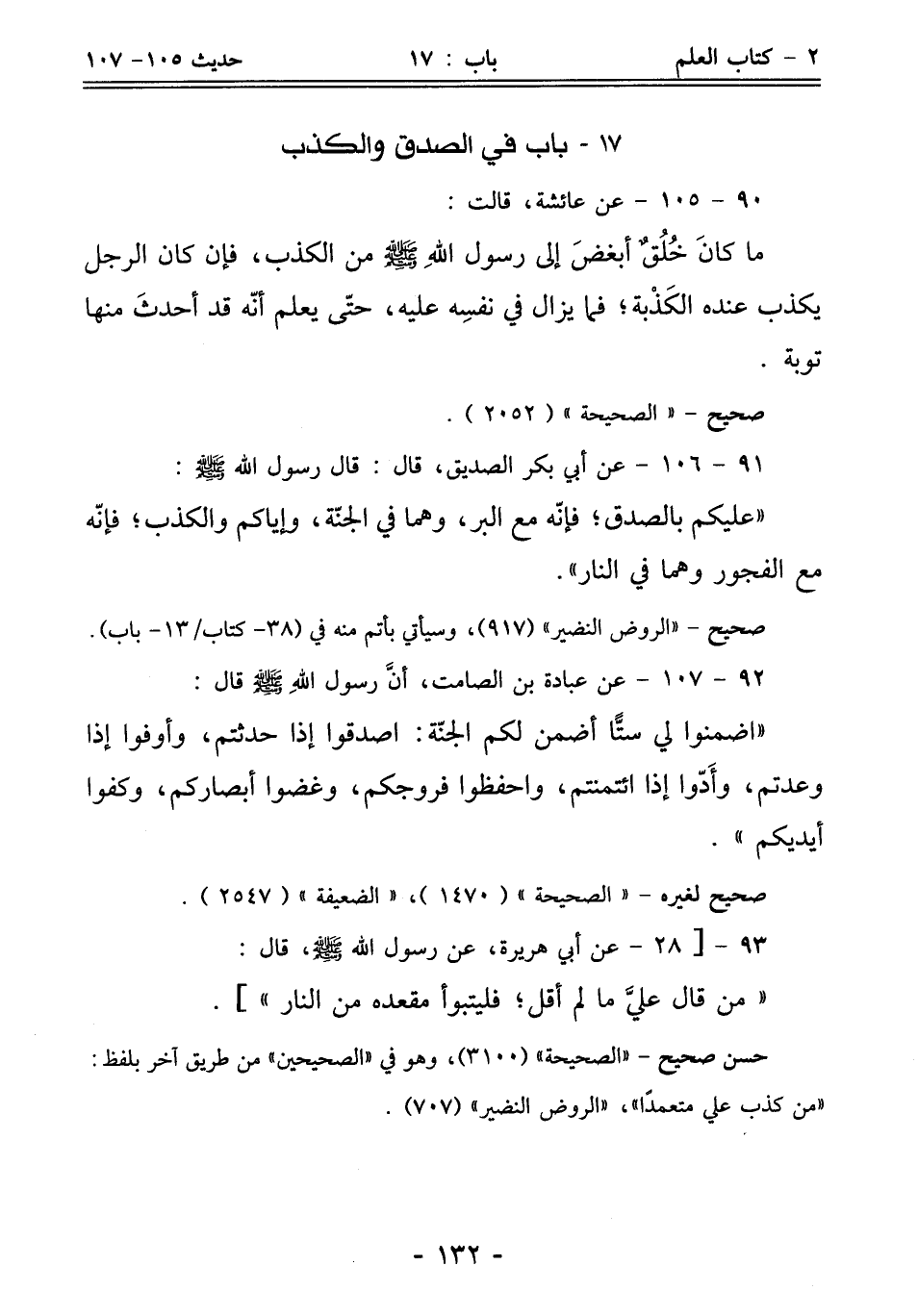 92 - 107 - عن عبادة بن الصامت، أنَّ رسول اللهِ - صلى الله عليه وسلم - قال: