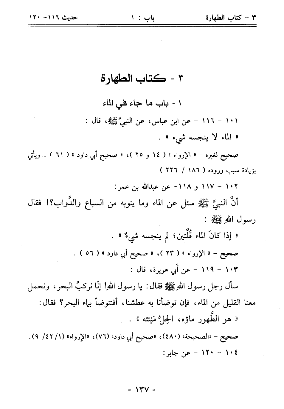 صحيح لغيره - "الإرواء" (14 و 25)، "صحيح أبي داود" (61). ويأتي بزيادة سبب وروده (186/ 226).