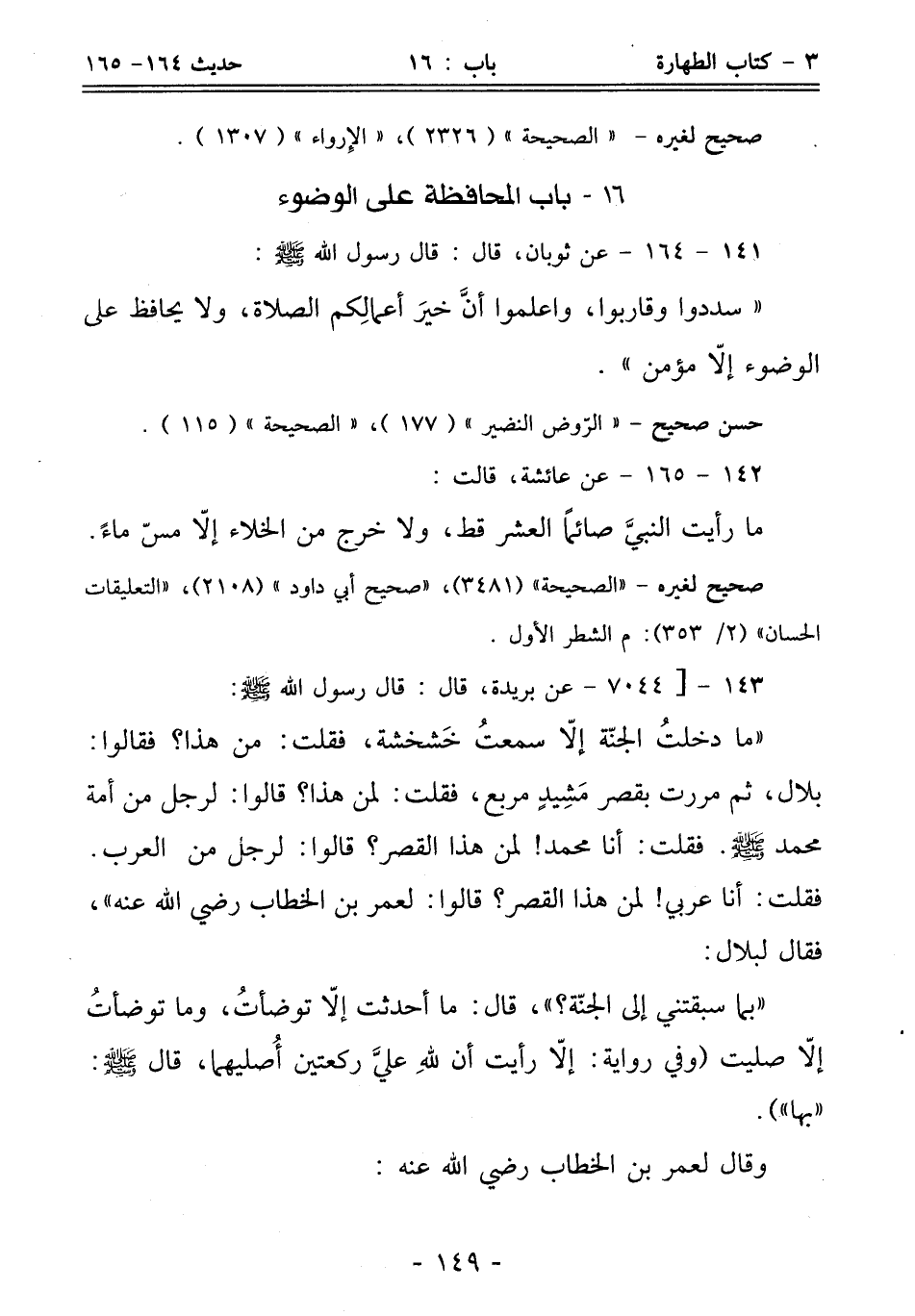 141 - 164 - عن ثوبان، قال: قال رسول الله - صلى الله عليه وسلم -: