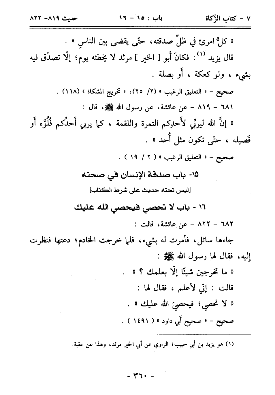 "كلُّ امرئ في ظلِّ صدقته، حتّى يقضى بين الناسِ".