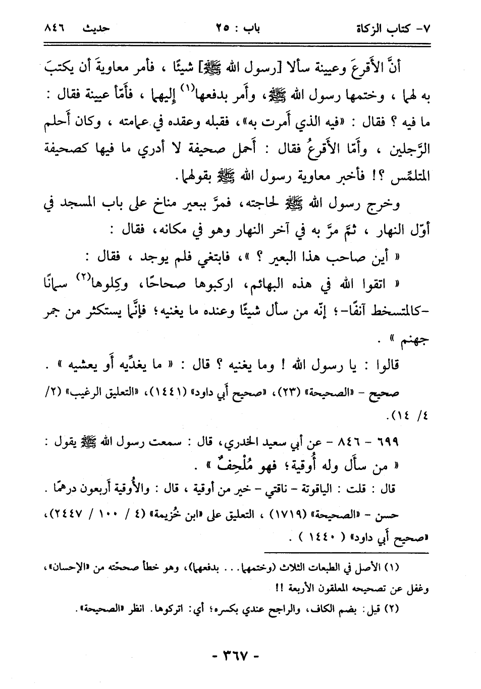 "اتقوا الله في هذه البهائم، اركبوها صحاحًا، وكِلوها (¬2) سمانًا - كالمتسخط آنفًا -؛ إنّه من سأل شيئًا وعنده ما يغنيه؛ فإنَّما يستكثر من جمر جهنم".