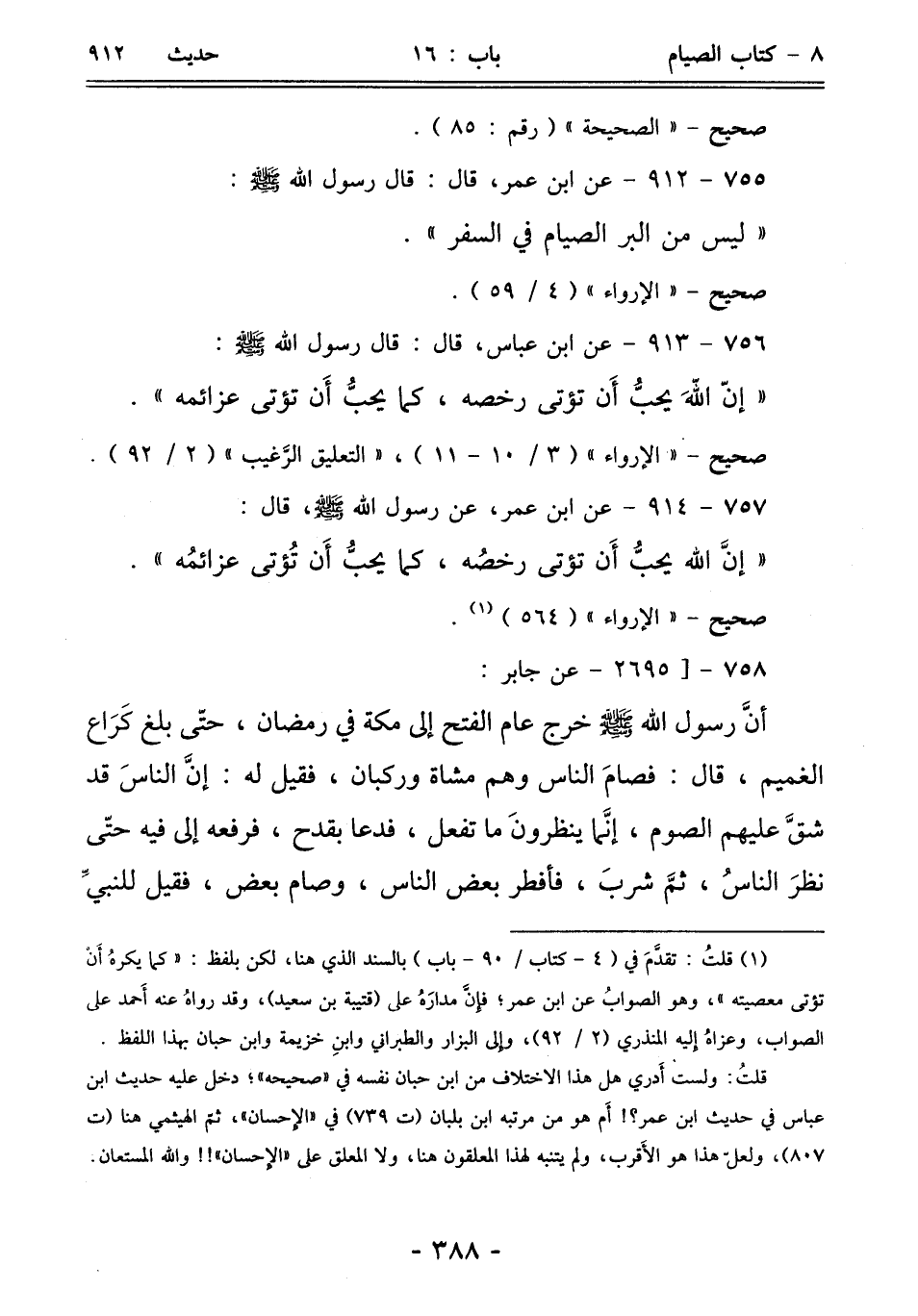 755 - 912 - عن ابن عمر، قال: قال رسول الله - صلى الله عليه وسلم -: