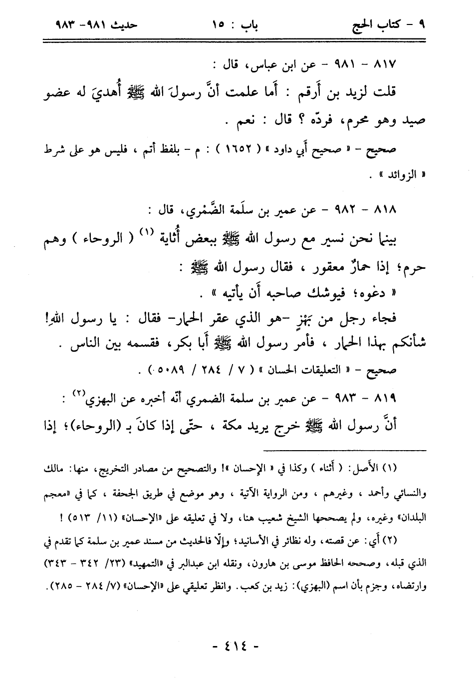 819 - 983 - عن عمير بْن سلمة الضمري أنّه أخبره عن البهزي (¬2):