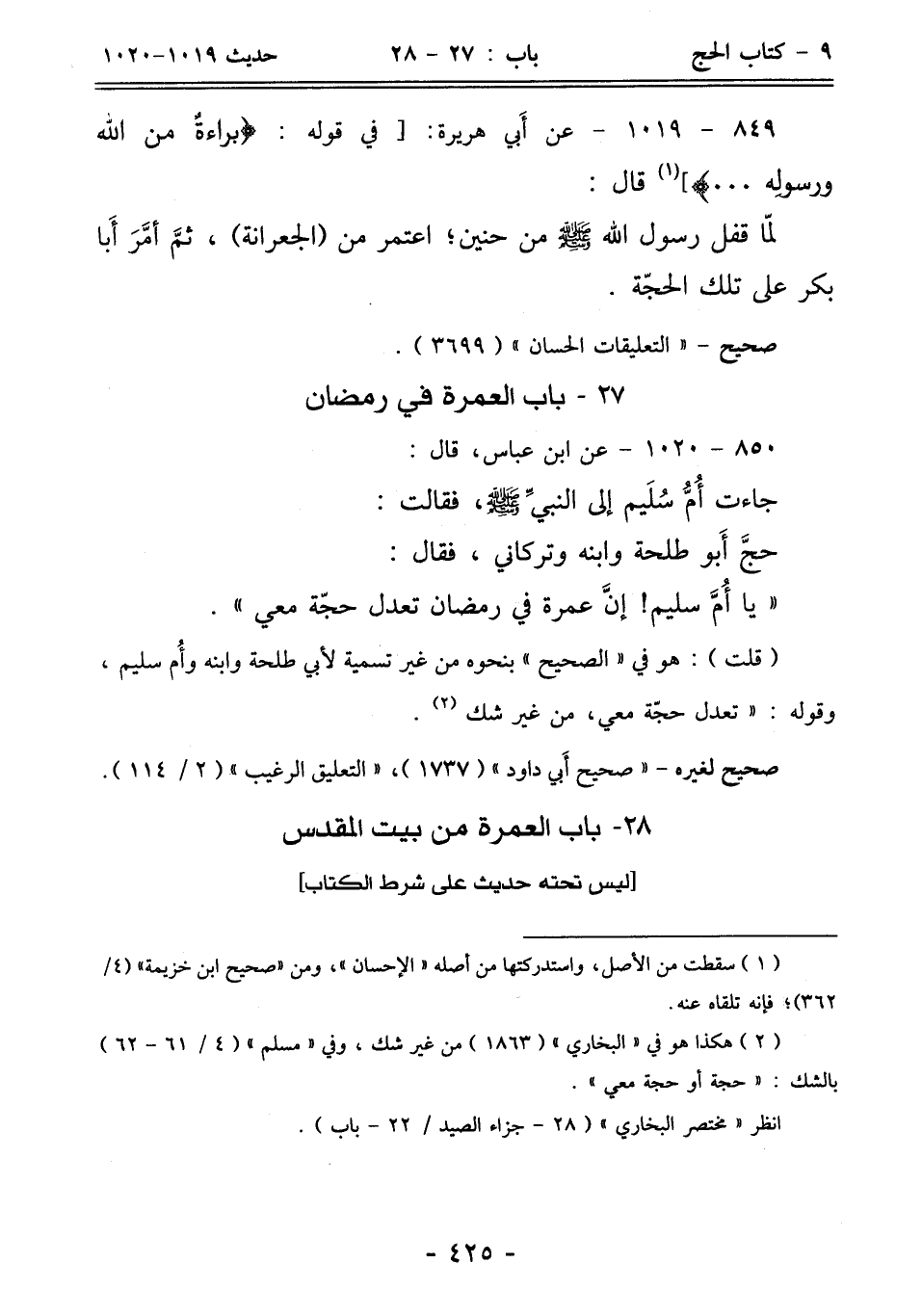 "يا أُمَّ سليم! إنَّ عمرة في رمضان تعدل حجّة معي".