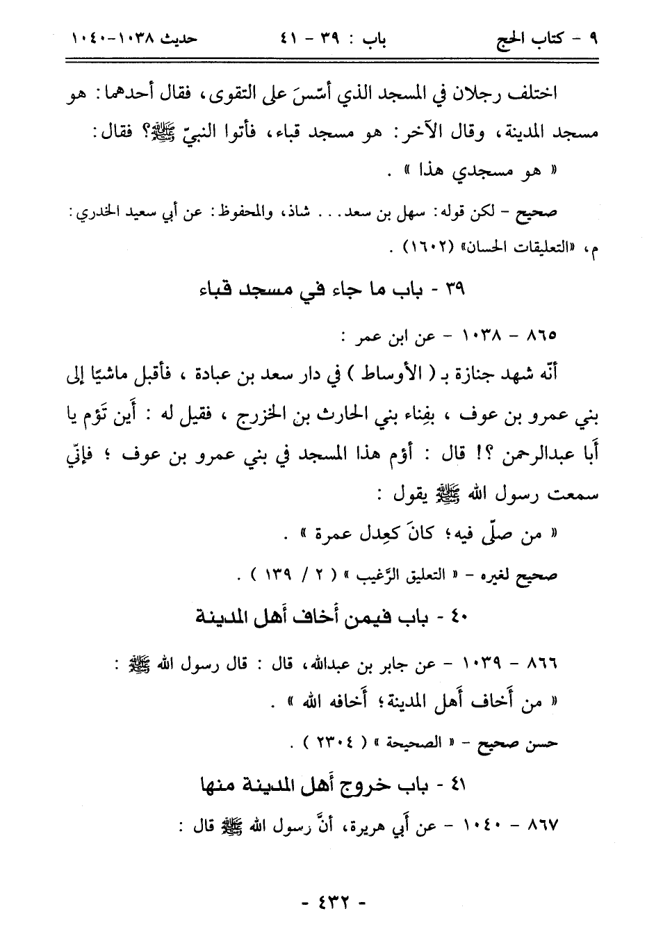 866 - 1039 - عن جابر بْن عبد الله، قال: قال رسول الله - صلى الله عليه وسلم -: