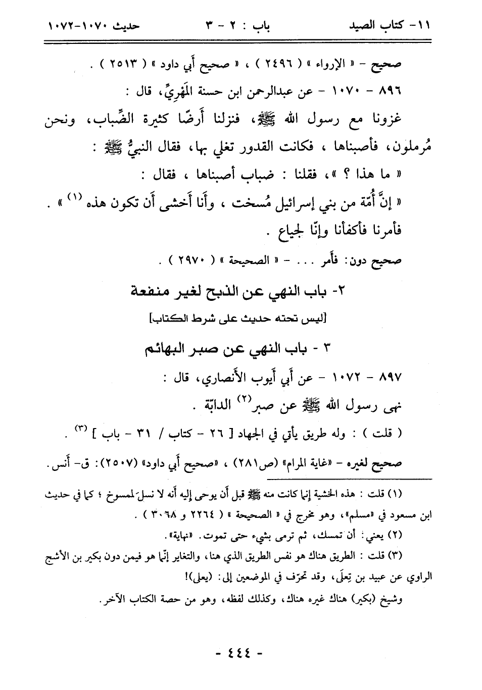 2 - باب النّهي عن الذبح لغير منفعة