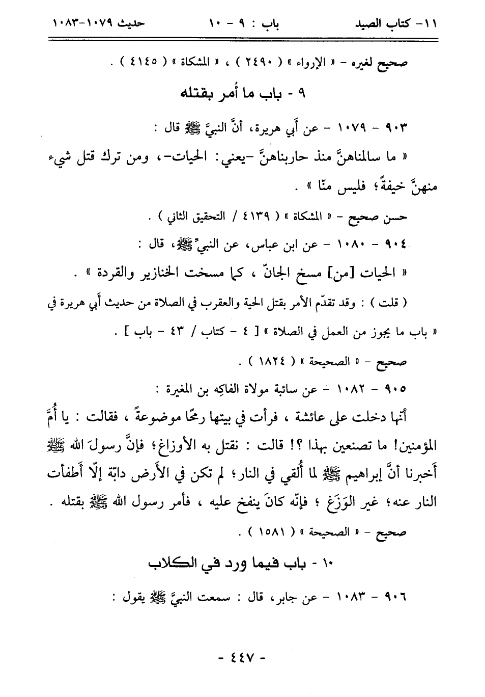10 - باب فيما ورد في الكلاب