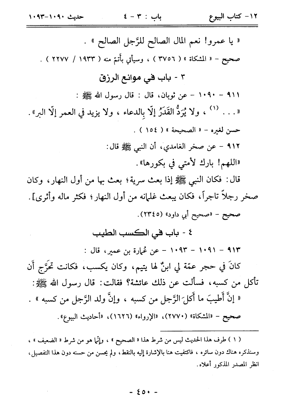 911 - 1090 - عن ثوبان، قال: قال رسول الله - صلى الله عليه وسلم -: