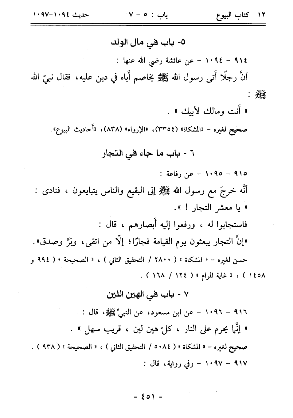 916 - 1096 - عن ابن مسعود، عن النبيِّ - صلى الله عليه وسلم -، قال: