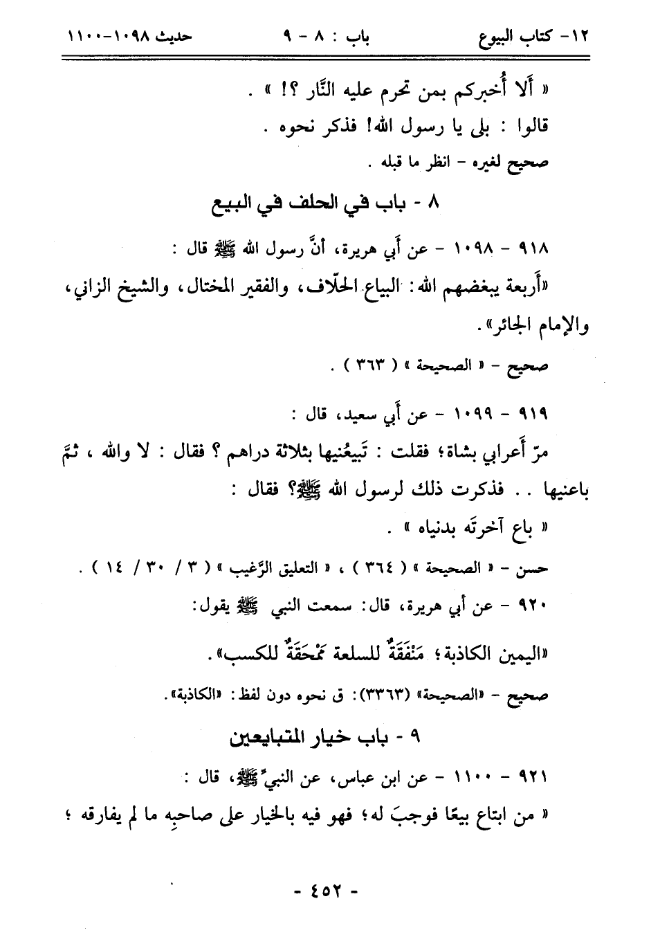 918 - 1098 - عن أَبي هريرة، أنَّ رسول الله - صلى الله عليه وسلم - قال: