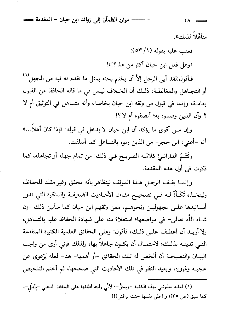 (¬1) لعله يعذرني بهذه الكلمة - وبحقِّ -؛ لأنَّي رأيته أطلقها على الحافظ الذهبي - بِبُطْلٍ -، كما سبق (ص 35)؛ و (على نفسها جنت براقش)!!