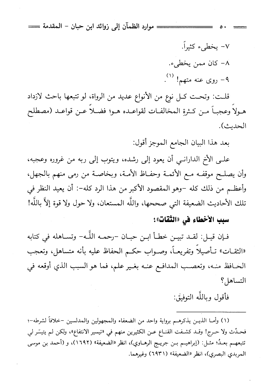 فإن قيل: لقد تبين خطأ ابن حبان - رحمه الله - وتساهله في كتابه "الثقات" تأصيلًا وتفريعًا، وصواب حكم الحفاظ عليه بأنه متساهل، وتعجب الحافظ منه، وتعصب المدافع عنه بغير علم، فما هو السبب الذي أوقعه في التساهل؟