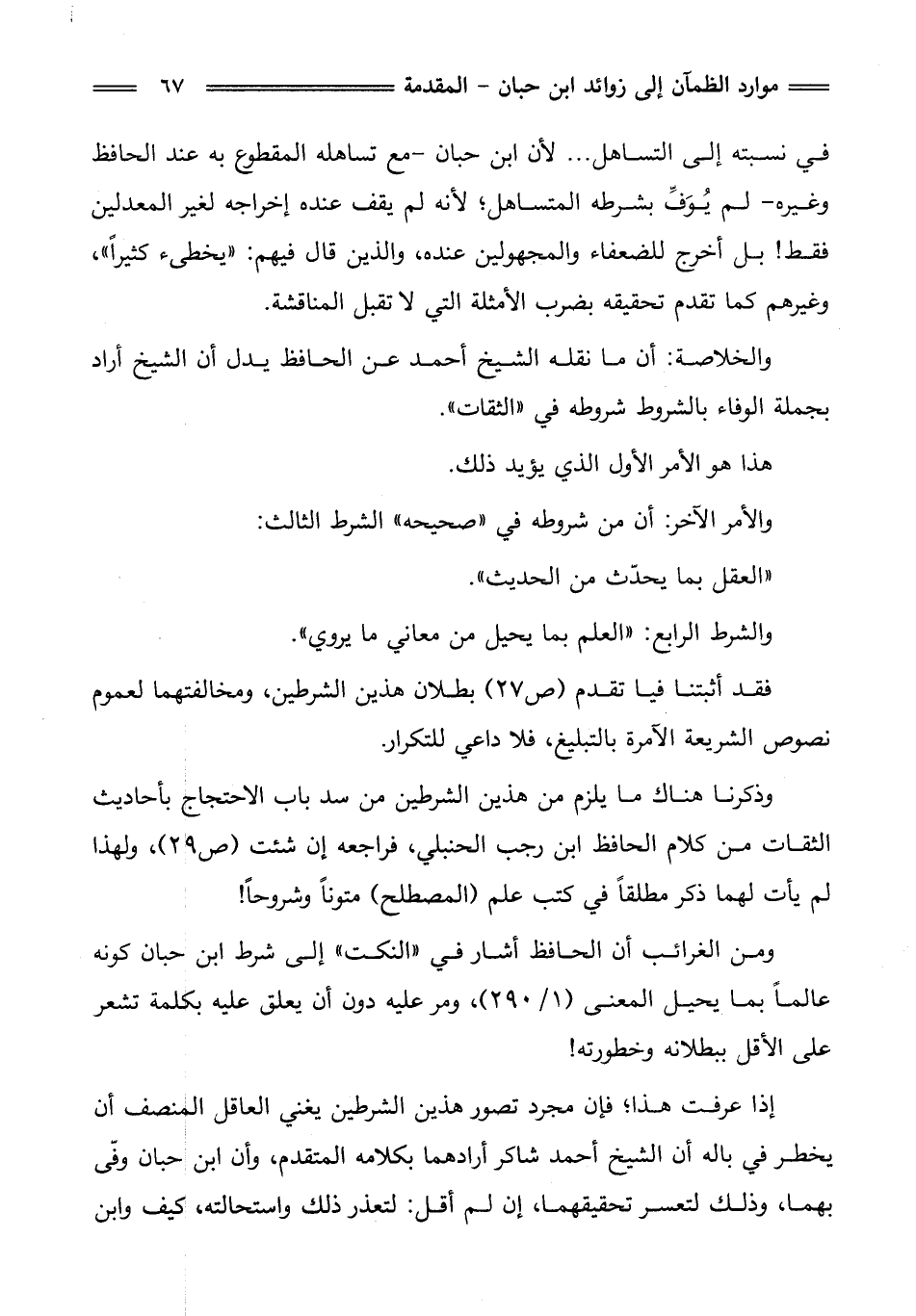 وذكرنا هناك ما يلزم من هذين الشرطين من سد باب الاحتجاج بأحاديث الثقات من كلام الحافظ ابن رجب الحنبلي، فراجعه إن شئت (ص 29)، ولهذا لم يأت لهما ذكر مطلقًا في كتب علم (المصطلح) متونًا وشروحًا!