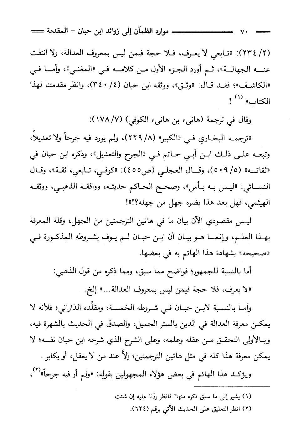ليس مقصودي الآن بيان ما في هاتين الترجمتين من الجهل، وقلة المعرفة بهذا العلم، وإنما هو بيان أن ابن حبان لم يوف بشروطه المذكورة في "صحيحه" بشهادة هذا الهائم به في بعضها.
