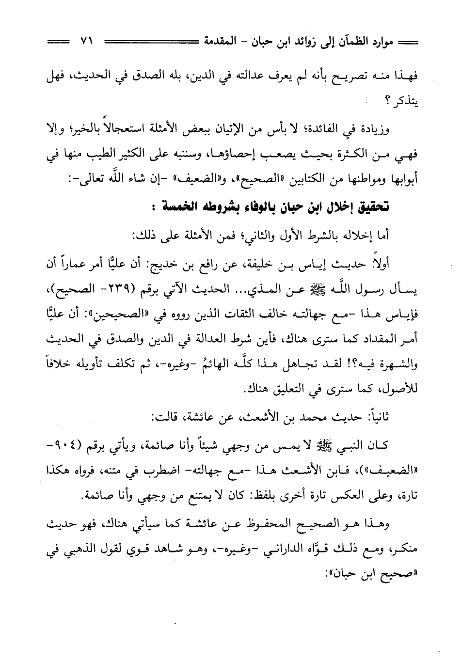 تحقيق إخلال ابن حبان بالوفاء بشروطه الخمسة: