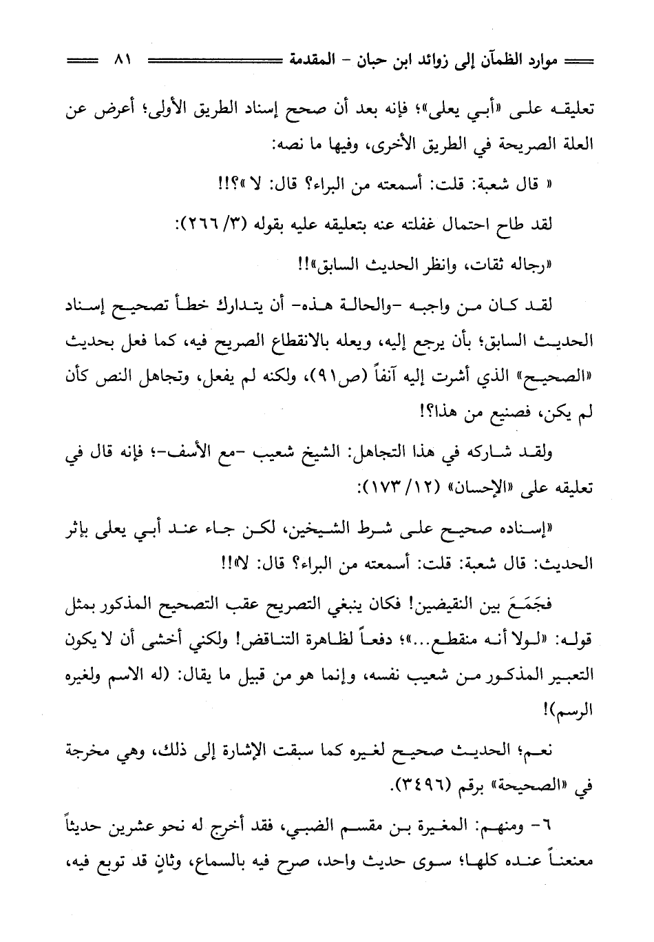 ولقد شاركه في هذا التجاهل: الشيخ شعيب - مع الأسف -؛ فإنه قال في تعليقه على "الإحسان" (12/ 173):