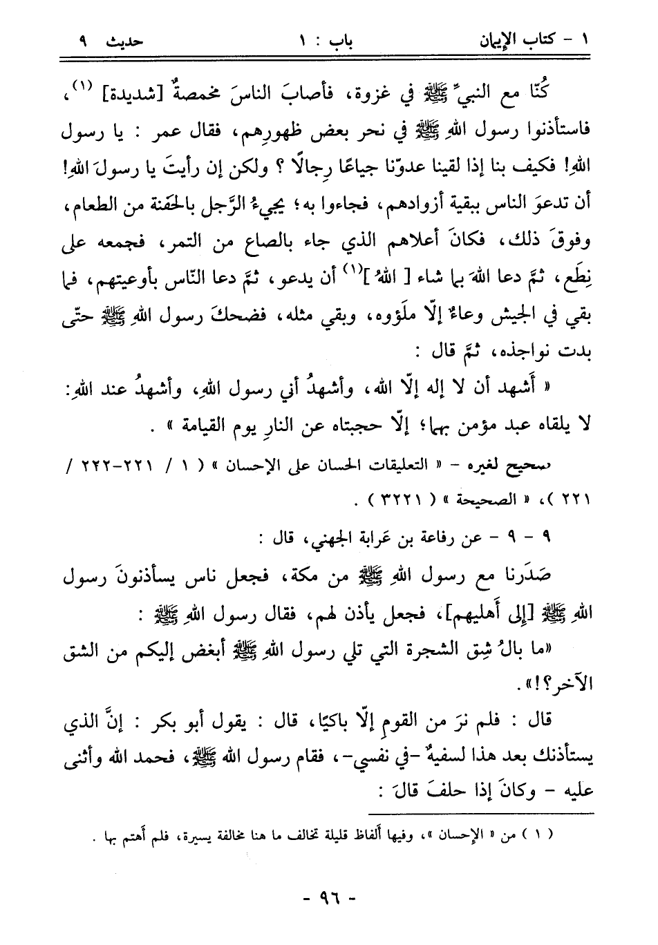 (¬1) من "الإحسان"، وفيها أَلفاظ قليلة تخالف ما هنا مخالفة يسيرة، فلم أَهتم بها.