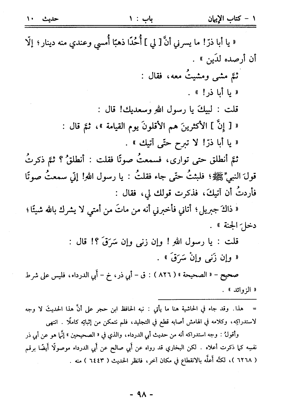 وأقولُ: وجه استدراكه أنه من حديث أبي الدرداء، والذي في "الصحيحين" إنما هو عن أبي ذر نفسِه كما ذكرت أعلاه. لكن البخاري قد رواه عن أَبي صالح عن أَبي الدرداء موصولًا أَيضًا برقم (6268)، لكنَّه أَعلَّه بالانقطاع في مكان آخر، فانظر الحديث (6443) منه.