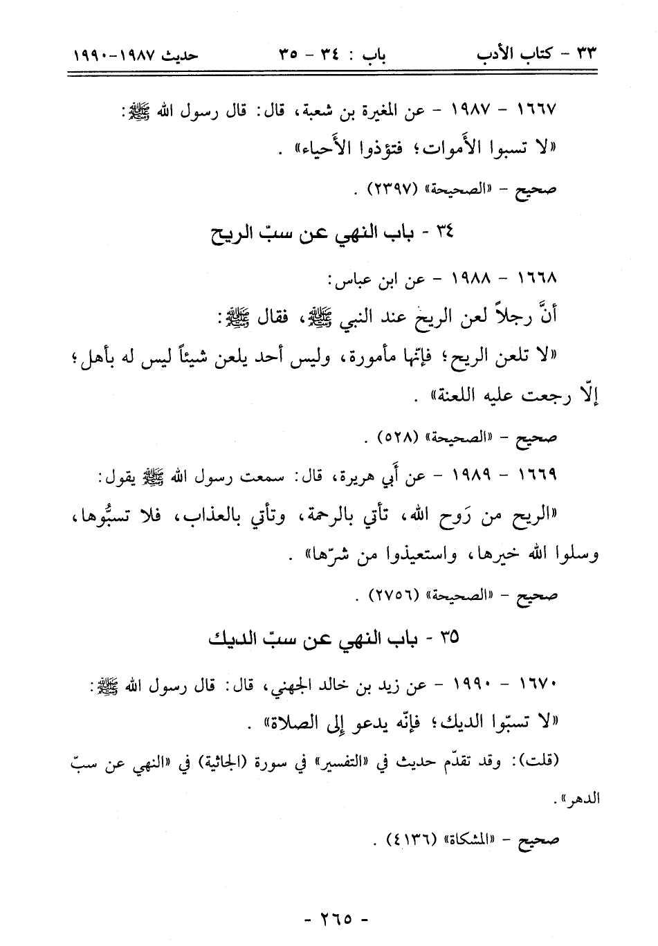 34 - باب النهي عن سبّ الريح