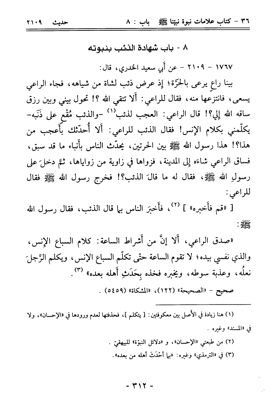 8 - باب شهادة الذئب بنبوته