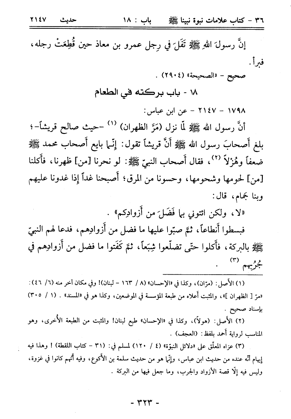 (¬3) عزاه المعلّق على "دلائل النبوّة" (4/ 120) لمسلم في: (31 - كتاب اللقطة)! وهذا فيه إِيهام أنّه عنده من حديث ابن عباس، وإنّما هو من حديث سلمة بن الأَكوع، وفيه أنهم كانوا في غزوة، وليس فيه إلّا قصة الأزواد والجرب، وما جعل فيها من البركة.