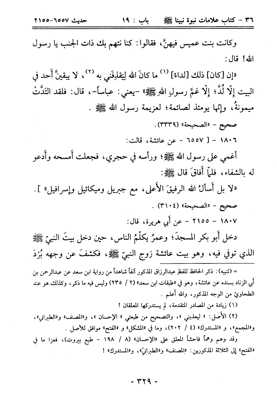 = (تنبيه): ذكر الحافظ للفظِ عبد الرزاق المذكور آنفًا شاهدًا من رواية ابن سعد عن عبد الرحمن بن أبي الزناد بسنده عن عائشة، وهو في "طبقات ابن سعد" (2/ 235) وليس فيه ما ذكر، وكذلك هو عند الطحاويّ من الوجه المذكور، والله أَعلم.