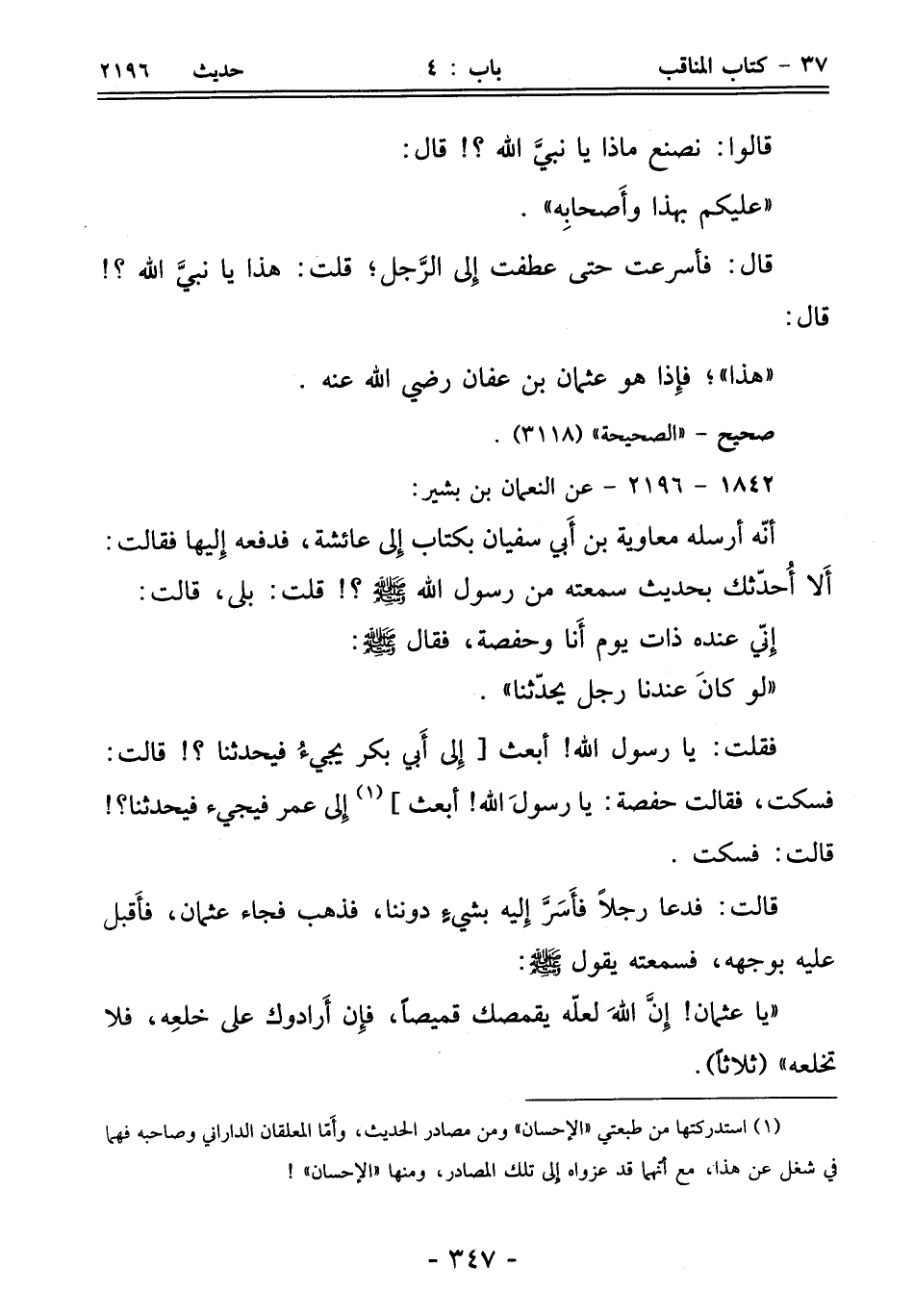 (¬1) استدركتها من طبعتي "الإحسان" ومن مصادر الحديث، وأَمّا المعلقان الداراني وصاحبه فهما في شغل عن هذا، مع أنهما قد عزوه إلى تلك المصادر، ومنها "الإحسان"!